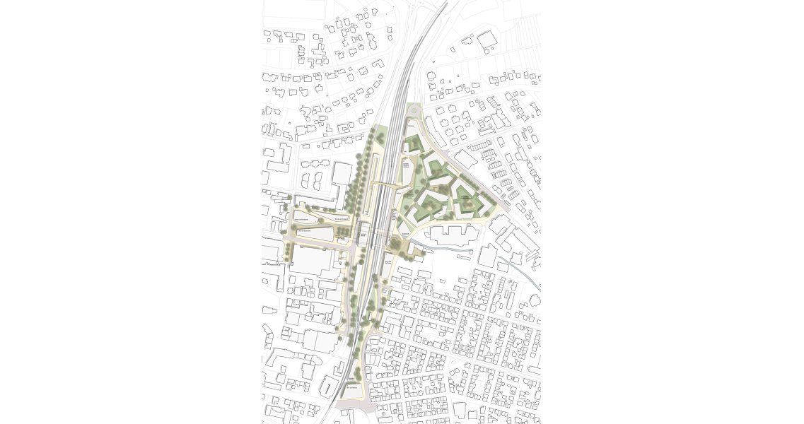 Das Bahnhofsgelände der Stadt Nürtingen soll auf beiden Seiten der Gleise städtebaulich ergänzt werden. Dabei ist der Verbindung beider Gebiete besondere Aufmerksamkeit zu schenken.