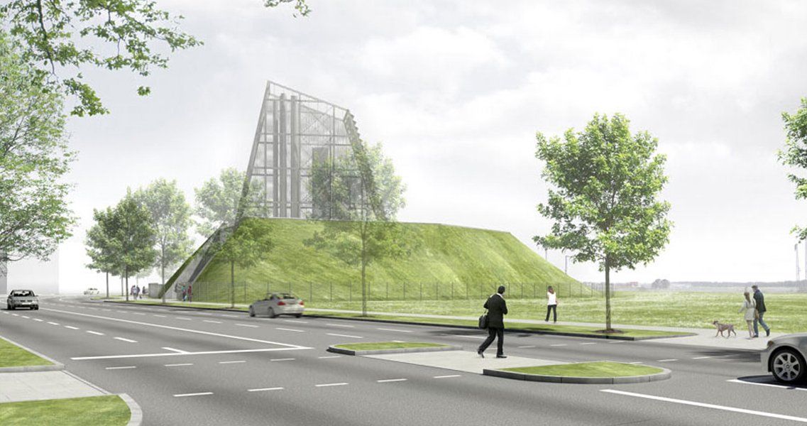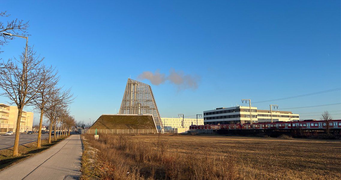 Das Heizkraftwerk stärkt den Landschaftskorridor zwischen dem Gut Freiham und dem neuen Stadtteil; aus einem grünen Hügel ragt ein neuer, hoher, glänzender Turm auf, markiert den Eingang zum neuen Stadtteil und bildet dabei einen weiteren selbstbewussten Baustein zum typischen Orts- und Landschaftsbild mit seinen wirksamen Dachlandschaften und einzeln stehenden Kirchtürmen. Die Architektur ist gestaltete Landschaft – das eigentliche Kraftwerk liegt innerhalb und unterhalb der Aufschüttungen.